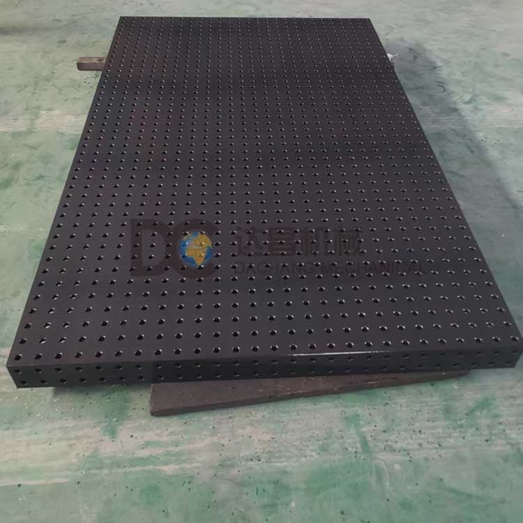 3D柔性焊接平臺(D16系列)采用鑄件/鋼件制作,堅固不易壞;φ16系列孔與孔間距50±0.05mm;底部加強筋保證穩定不變形。普通的鑄件平臺跟鋼件平臺相比,鑄件不容易粘焊渣不容易生銹。但鋼制三維柔性焊接平臺表面可做滲氮處理或鍍鉻處理,具有防銹增加表面硬度的作用。
